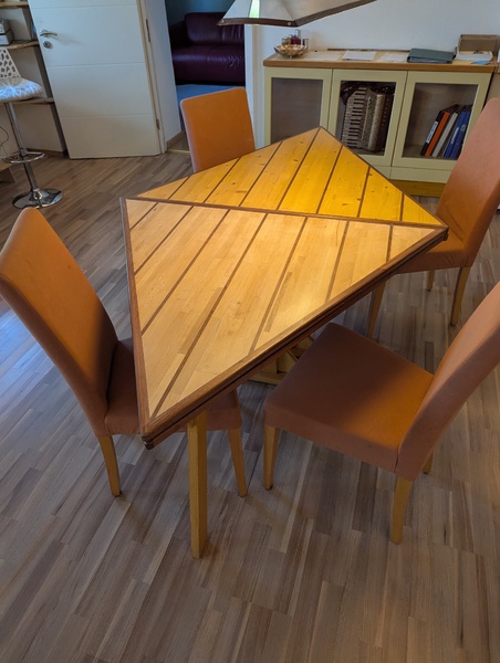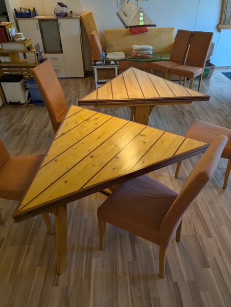 3-eckig, Ausgeklappt Raute, Kantenlänge 1,2m. Fichte/Meranti.