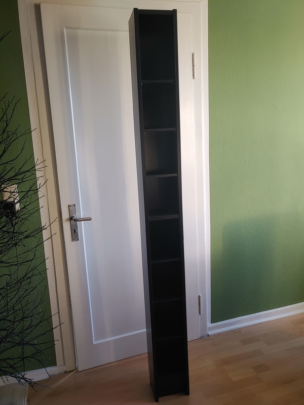 Ich verschenke ein schwarzes Ikea CD/DVD Regal aus der Billy Serie. Leichte Gebrauchtspuren sind vorhanden.