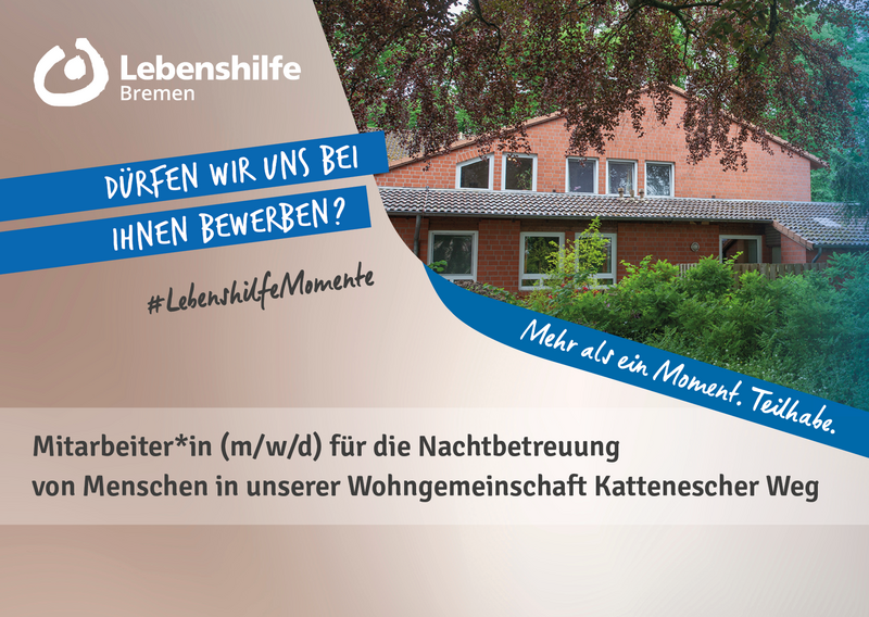 Lebenshilfe Bremen | Fachbereich Wohnen | Waller Heerstr. 55 | 28217 Bremen | karriere@lebenshilfe-bremen.de