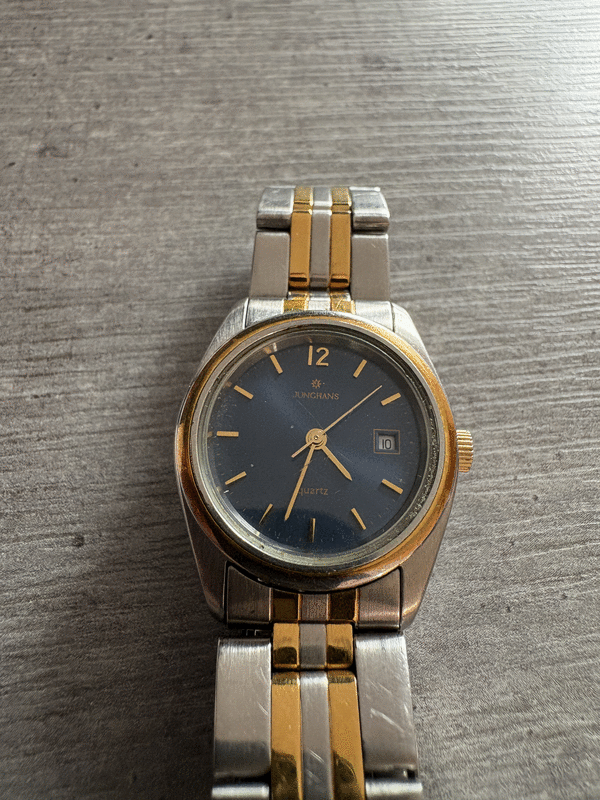 -Sammlerstück- Eine klassische Quarz-Armbanduhr der deutschen Traditionsmarke Junghans, bekannt für langlebige Zeitmesser.