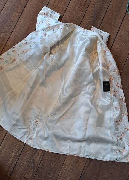 Sehr eleganter Longblaser zu verkaufen, Marke Stiesing (Bremen), Grundfarbe offwhite/creme mit Blumenstickerei. Das Schild zum Material fehlt leider (Seide?). Größe etwa 44.
