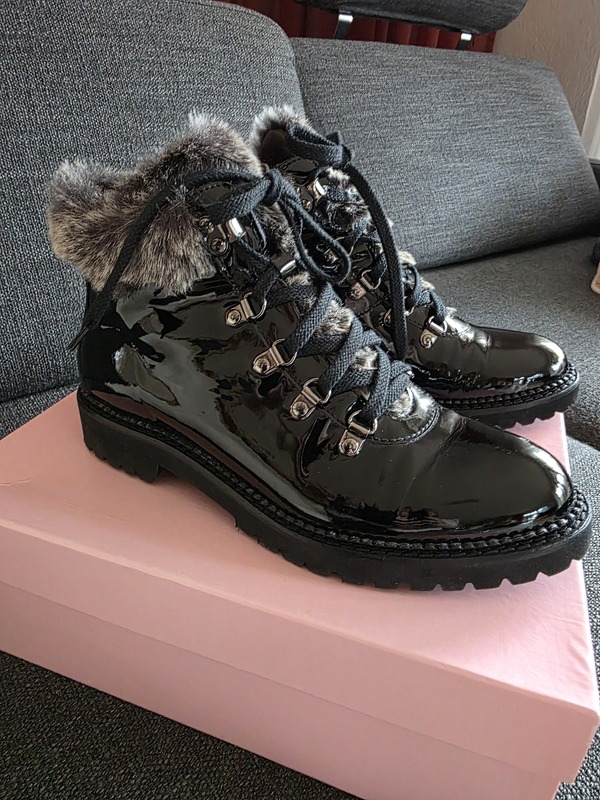 Schicke Lackstiefeletten mit Fellkante Gr. 40