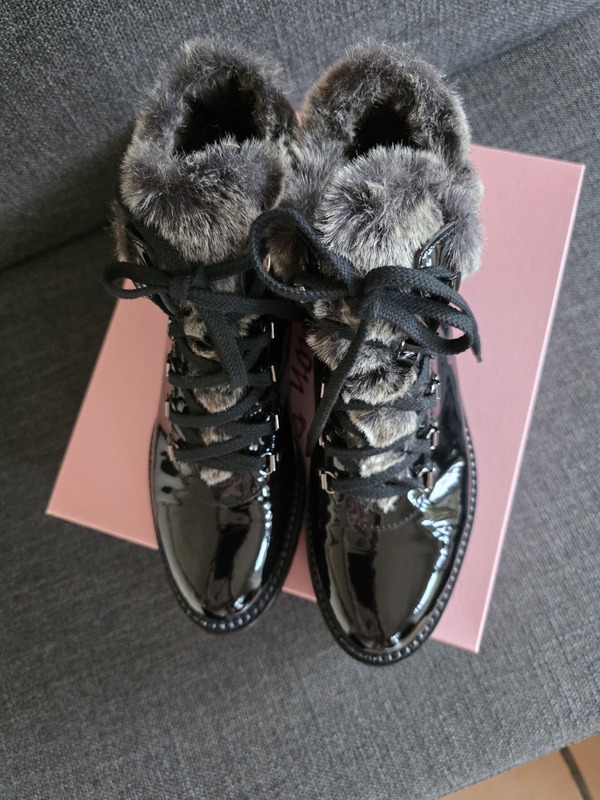 - Schicke Lackstiefeletten mit Fellkante Gr. 40