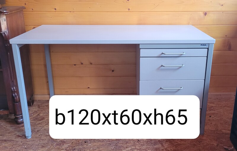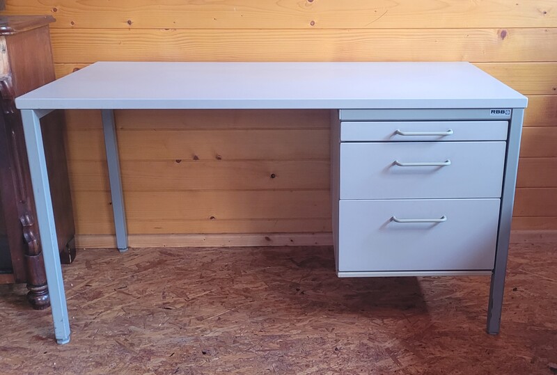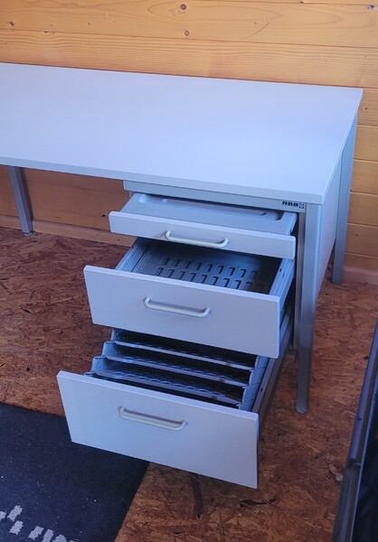 günstig für Büro, Kinderschreibtisch" lichtgrau - Stabiler Schreibtisch 120x60 cm inkl. Schubladenschrank mit pulverbeschichtetem Stahlgestell und Melaminharz Beschichter Holzplatte, mit drei Schubläden Top wie Neu nur 50.-€ bei Abholung