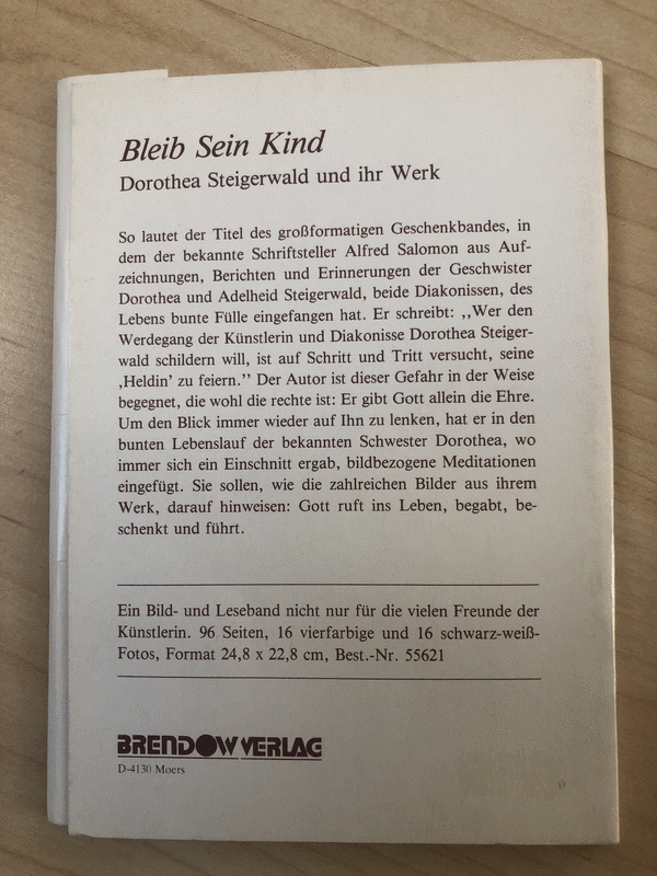 Brendow Verlag, „Bleib sein Kind“ Die bekanntesten Motive von Dorothea Steigerwald sind zu einem Sinnbild für Geborgenheit geworden. Die offene, starke Hand Gottes, in die sich das Kind flüchtet und Geborgenheit, ... original Karten (Echtfoto) um 1950, der Zustand ist sehr gut und unbenutzt. Diese Rarität sucht jetzt einen liebevollen Neubesitzer, ein tolles Geschenk für einen Karten-Fan oder eine Trophäe für Ihre Sammlung. Tierfreier Nichtraucherhaushalt! Privatverkauf, siehe Fotos, jetzt nur 3,00€ je Karte oder alle 7 Karten zusammen nur 17€, Versand (€ 2,00) bei Kostenübernahme möglich