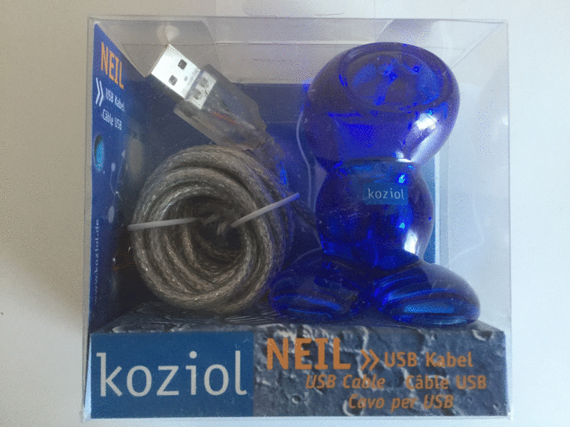 Neil blau - USB Kabelhalter mit USB Leuchtkabel. Ideal für digitale Kameras, mp3-Player, USB-Sticks und alles, was nur vorübergehend an den PC angeschlossen werden soll. Diese Rarität sucht jetzt einen liebevollen Neubesitzer, ein tolles Geschenk für Freunde oder eine Trophäe für Ihren PC, Tierfreier Nichtraucherhaushalt! Unbenutzter und unbeschädigter Artikel in der original Geschenkverpackung, siehe Fotos, Neupreis 24,90€ jetzt nur 12€, Versand (€ 4,50) bei Kostenübernahme möglich