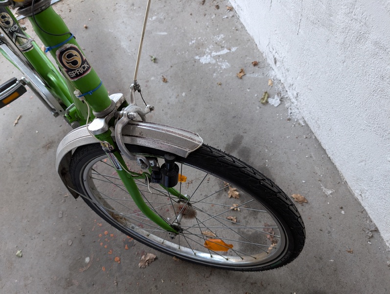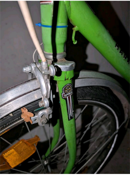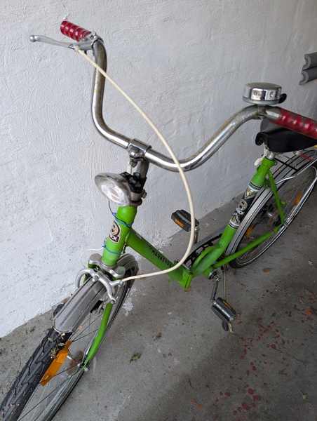 Unser Sohn hat sich dieses Rad zum 9. Geburtstag selbst gekauft, da er altes liebt. Er ist damit ein Jahr zur Schule etc gefahren. (Hat noch ein weiteres, modernes Rad). Leider haben wir dann einen Bruch an der Gabel gesehen und seitdem steht das Rad still.