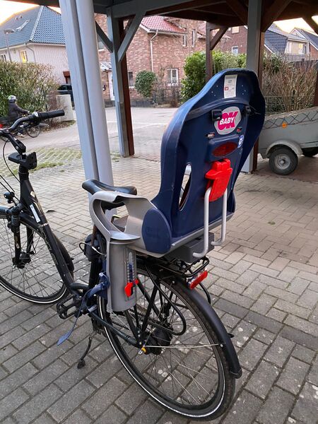Befestigung am Sattelrohr, dadurch sehr bequeme Federung für Kinder. Nicht fest auf dem Gepäckträger.