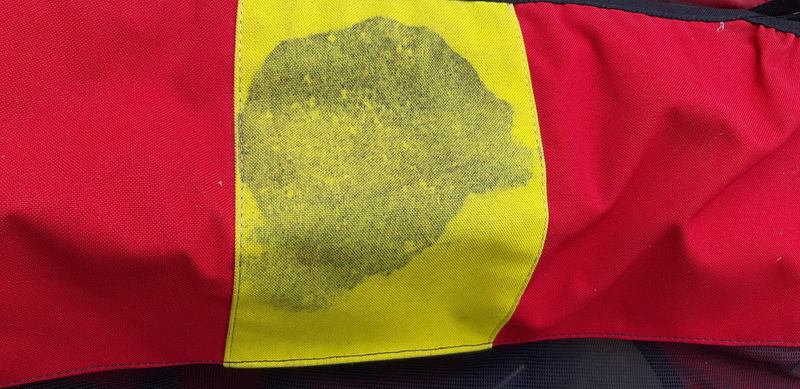 Alter Spackfleck (Fliegengitter) und kleiner Riss von einem transportierten Kuhfuß (Flicken sind vohanden) (siehe Fotos)
