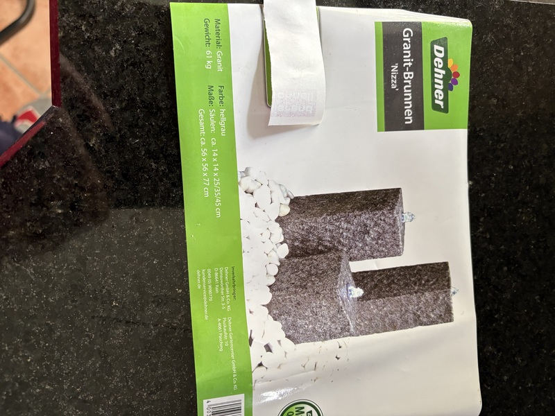 Biete einen Gartenbrunnen/ Wasserspiel in einem guten Zustand (ohne Pumpe und Beleuchtung) mit 3 unterschiedlich hohen Granitquellsteinen und Wasserbehälter. Das Teil ist von Dehner ( kompletter Neupreis 189€ )
