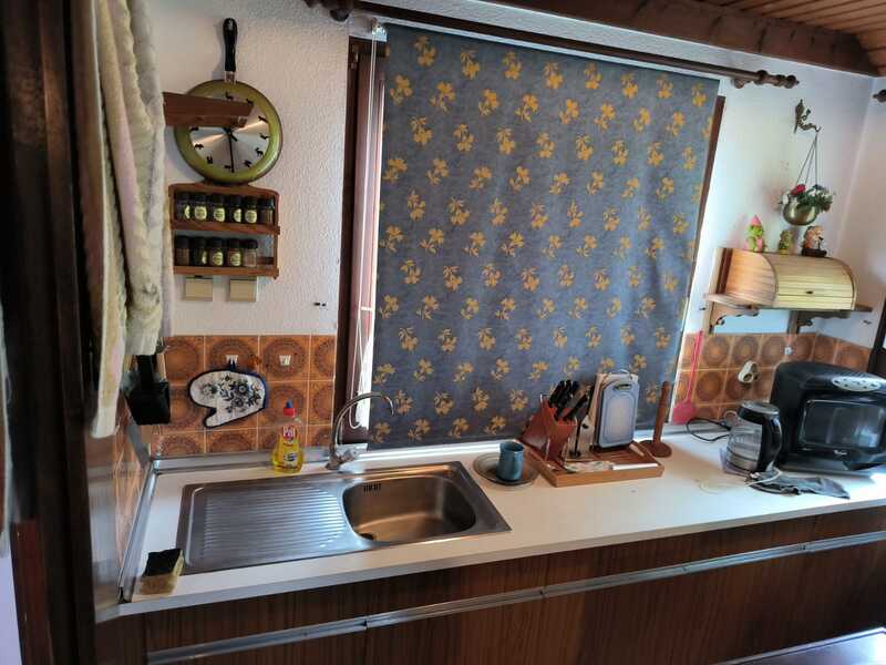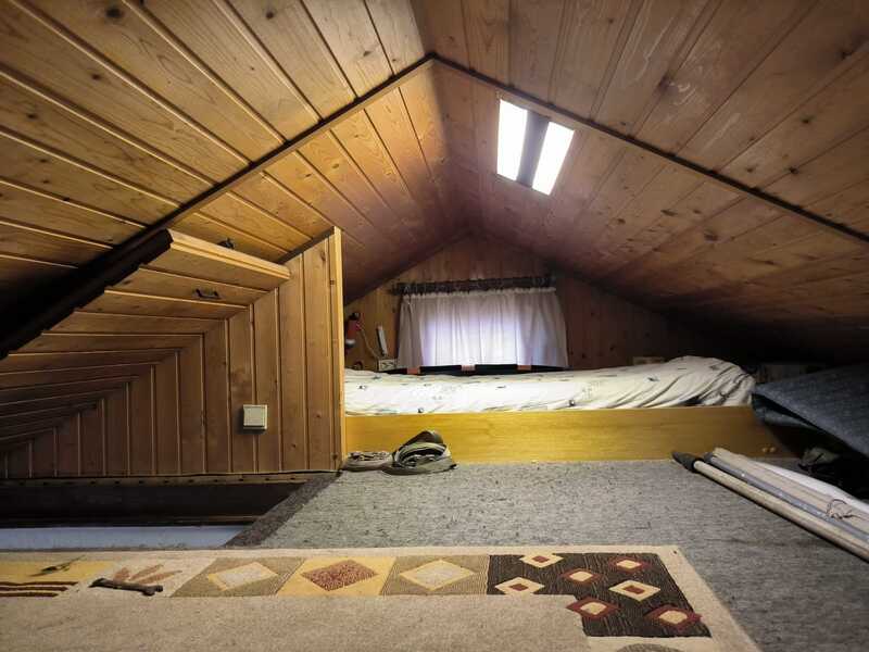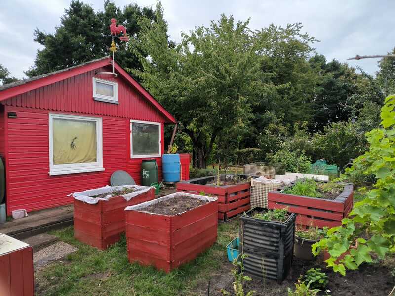 Laube: Holzlaube Bj. 1977 mit Satteldach 20 qm, Dachboden gedämmt, Küche