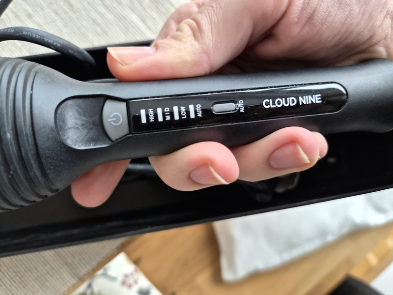Er ist besonders geeignet um schöne große Locken zu zaubern und hat verschiedene Hitzeeinstellungen, wie auf dem Bild zu sehen.