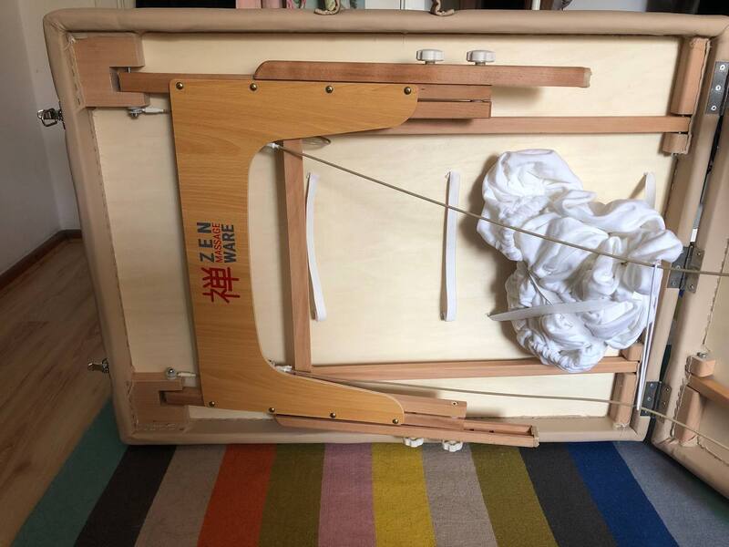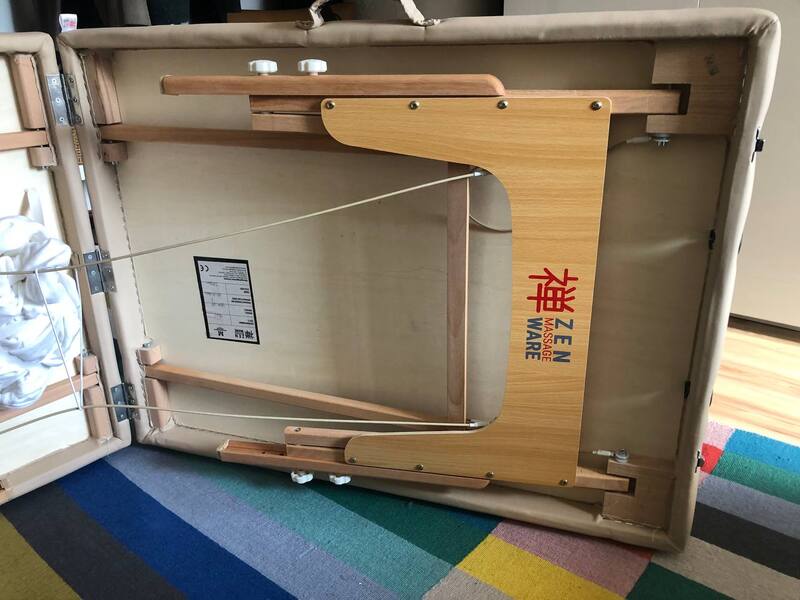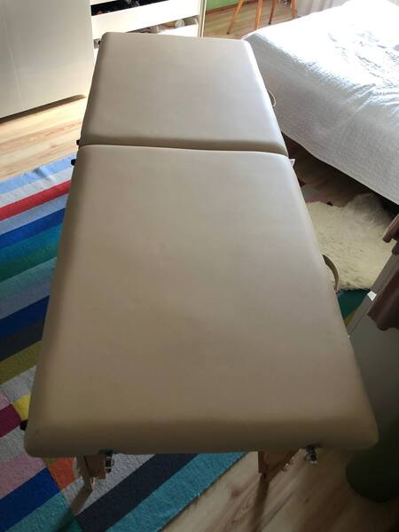 Ich biete eine wenig benutzte, klappbare Massageliege an, die mit Tasche, extra gekauftes Spanntuch und Kopfteil erworben werden kann. Alles sauber und einsatzbereit.