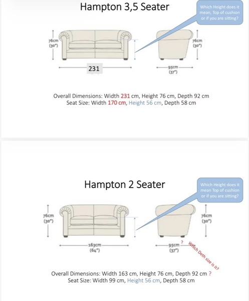 Die Sitzhöhe beträgt 44cm und der Rücken beider Sofas ist mit Leder bezogen.