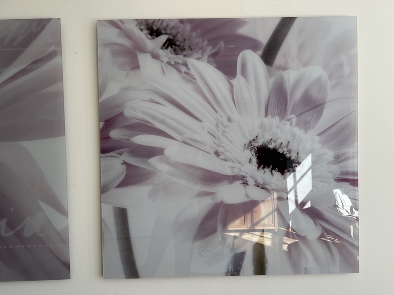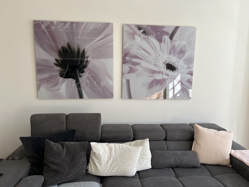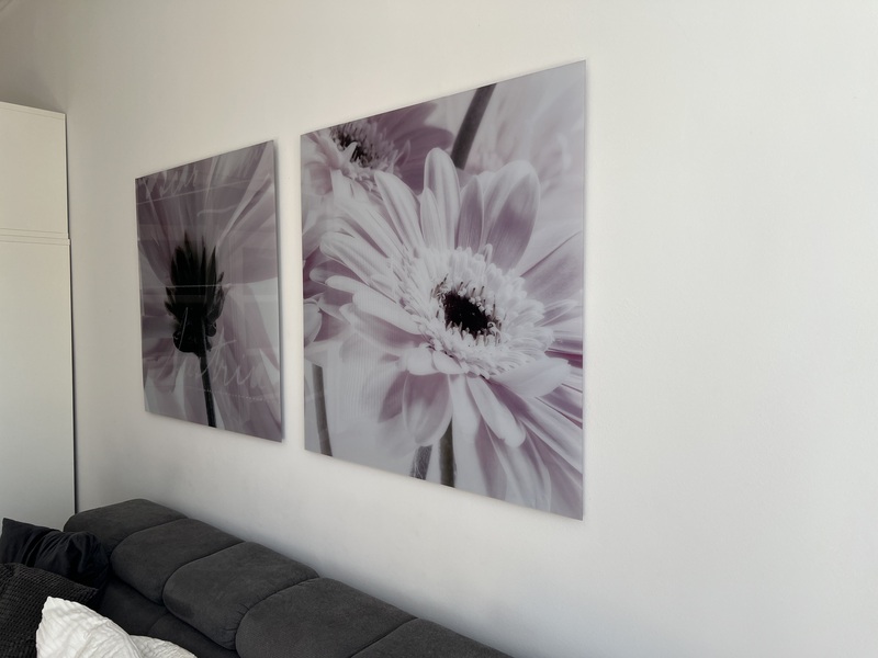 2 grosse Bilder je 1m x1 m , stilvoll, modern , große Blumenmotive auf Acryl