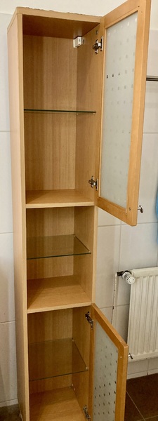 Badezimmerschrank Buche Breite 32cm Tiefe 33 cm und Höhe 196 cm 3 Glasböden zu verkaufen VB 40€, Tierfreier und Nichtraucherhaushalt