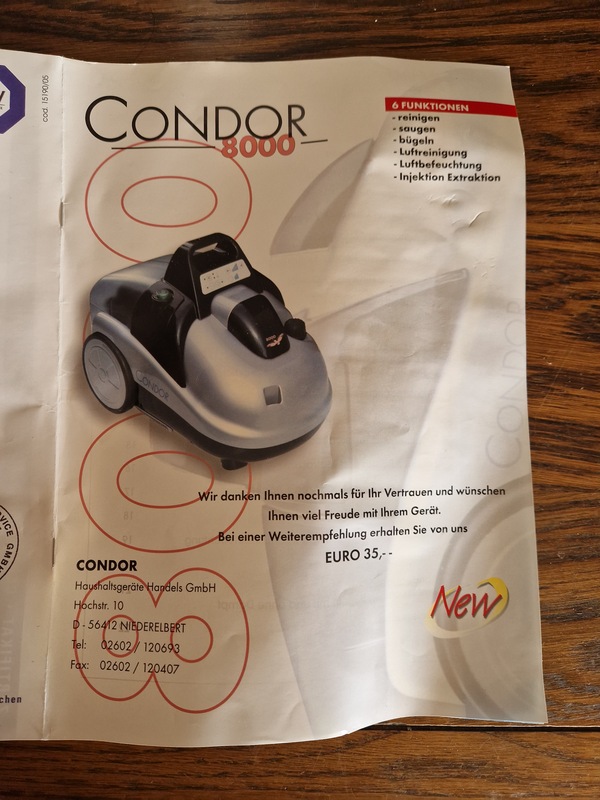 Verkaufe eine Condor 8000 Reinigungsmaschine zum Dampfsaugen und Dampfbügeln. Ein Multifunktionsgerät zum reinigen, saugen, bügeln, Luftreinigen, Infektion und Extraktion.