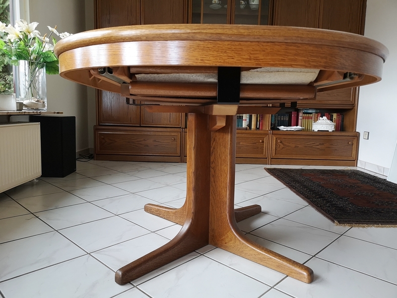 Der Tisch ist naturgemäß ziemlich schwer, da aus Massivholz und mit so vielen Einlege-Platten. Er ist sehr stabil.