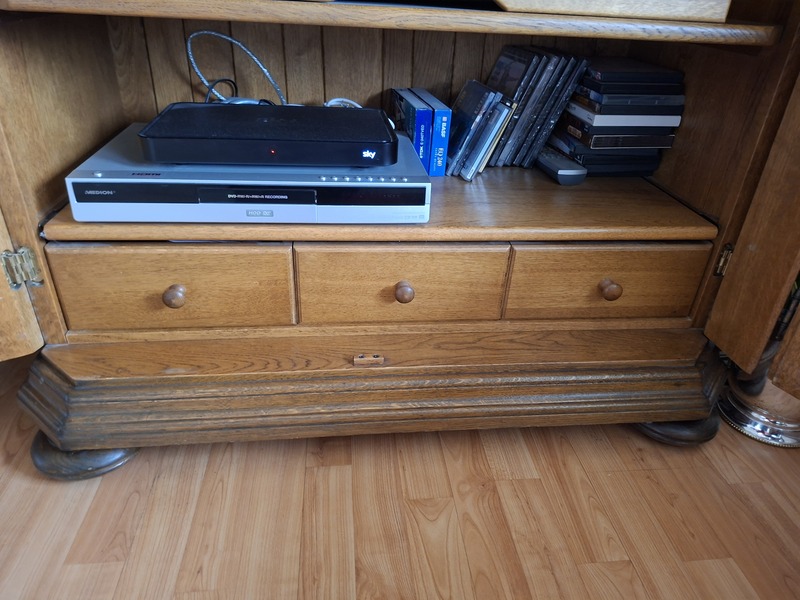 Biete einen Fernsehschrank aus Eiche an, der aus Massivholz ist. Der Schrank ist in einem sehr guten Zustand, keine Beschädigungen oder Abspaltungen am Holz. Das Holz auf dem der Fernseher steht, ist beweglich. Der Verkauf erfolgt ohne Geräte und Deko. Der Schrank kann auch anders genutzt werden.