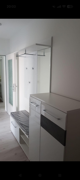Liebe Interessent/Innen, ich biete eine sehr gut erhaltene 3-teilige Garderobenwand bestehend aus einem Garderobenpanel, einer Bank, sowie einem Schuhschrank in weiß (Hochglanz). Das Garderobenpanel hat die Maße BHT: 110cm, 123cm, 28cm Die Bank BHT 110cm, 46 cm, 38cm Der Schuhschrank BHT 80cm, 113 cm, 38cm Der Neuwert lag bei 523€ und würde sie für 150€ VB verkaufen. Bitte Selbstabholung in Findorff. Alles ist wirklich sehr gut erhalten.