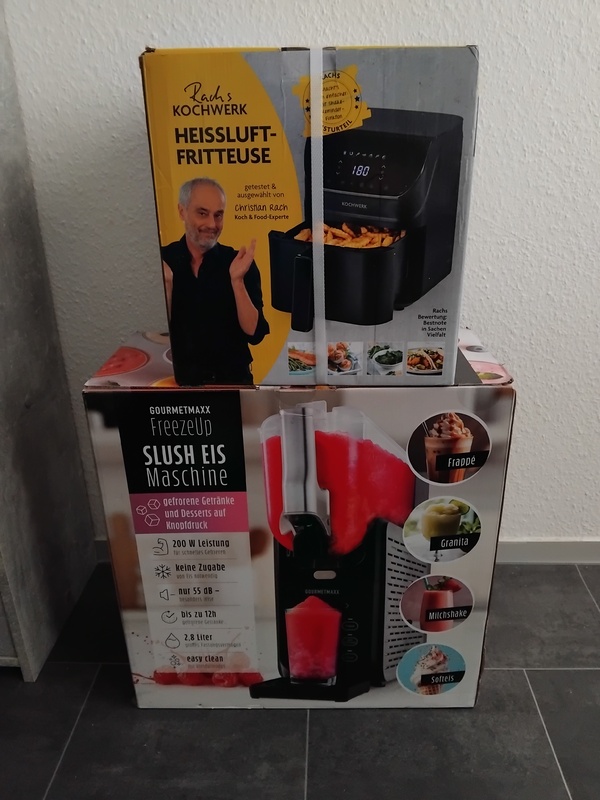 ich verkaufe hier 2 Geräte, original verpackt, als Set eine Heißluft-Fritteuse und eine Slush-Eis-Maschine. Ohne Garantie, aber vor Ort können die Geräte kontrolliert werden. Für beides möchte ich einen Festpreis von 120 Euro. Nur für Selbstabholer.