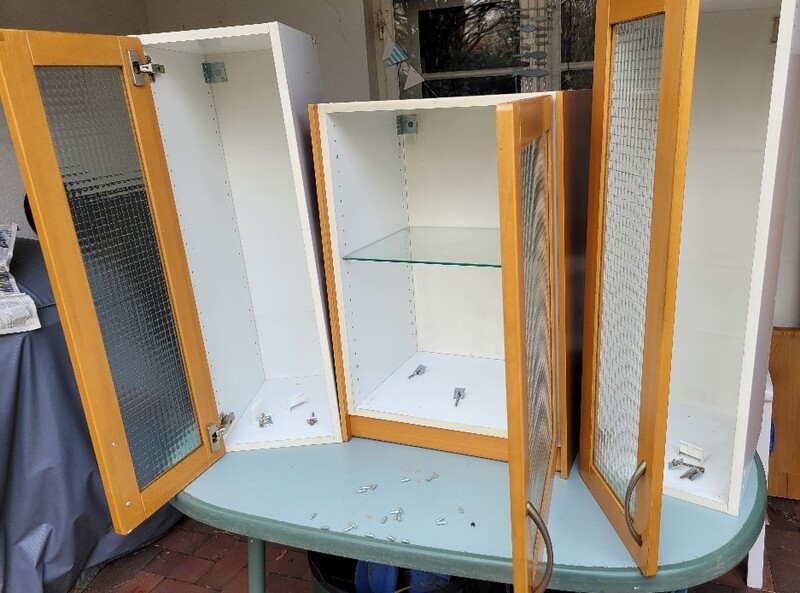 Ikea - Küchenoberschränke zu verkaufen Verkaufe privat 1-3 gebrauchte Küchenoberschränke (keine Garantie / Rücknahme) für jeweils 25€, zusammen für 60€ . Die Schränke haben Buchentüren mit Drahtglas und 1 bzw. 3 Glaseinlegeböden, Montagematerial ist inclusive. Es handelt sich um 2 baugleiche Rechteckformate (s. Fotos: links u. rechts) mit den Maßen (H/B/T) 93 x 30 x 37 cm., mit jeweils 3 Glasböden Der 3. ist eher quadratisch (s. Foto: in der Mitte) mit den Maßen (H/B/T) 76 x 53 x 37 cm. Er hat rechts und links 2 zusätzliche, Buchenseitenteile. Er kann also auch gut separat montiert werden. Da jeder Schrank 37 cm tief ist, kann man sie gut nebeneinander montieren, muss aber nicht. Die beiden rechteckigen Schränke haben im Seitenteil kleine Beschädigungen/Bohrlöcher , bedingt durch die letzte Benutzung, alle 3 haben leichte Gebrauchsspuren. Die Schränke stehen in Bremen-Findorff, Abholung erwünscht, kein Versand! Sollten die Schränke in Bremen bleiben u. besteht keine Abholmöglichkeit, wäre auch eine Anlieferung durch mich gegen eine Kostenpauschale möglich. Bei Interesse / Besichtigungswunsch bitte Mail. Danke vorab!