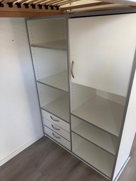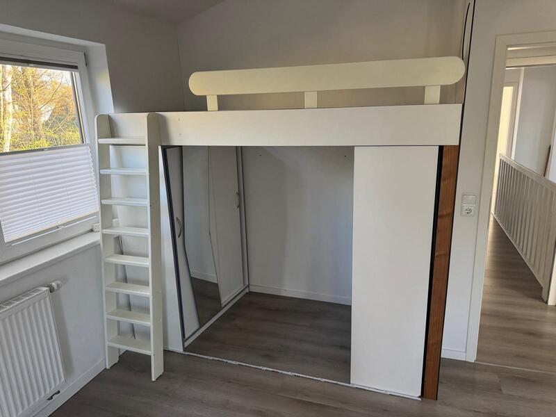 - Massivholz Hochbett mit Kleiderschrank