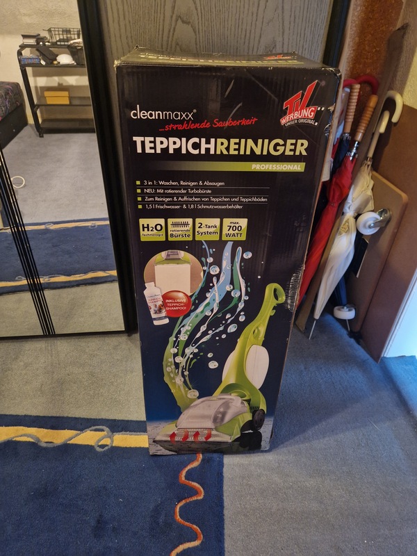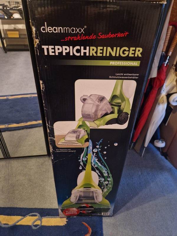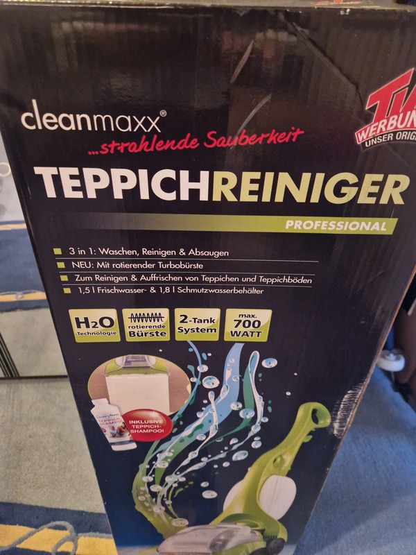im Angebot steht ein Teppichreiniger 3 in 1 original Verpackt aus dem Hause Cleanmaxx