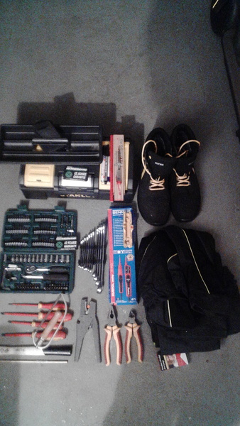 Werkzeuge Helm Bekleidung Schuhe siehe Bild neuwertig