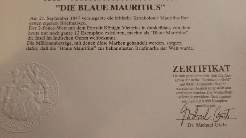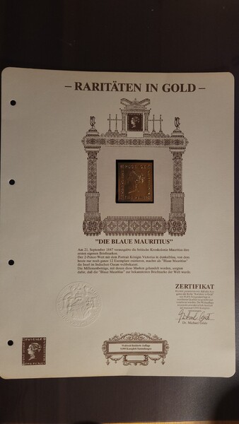 Mind. 23 Karat vergoldete Markennachbildung der 2 Pence Blaue Mautitius,
