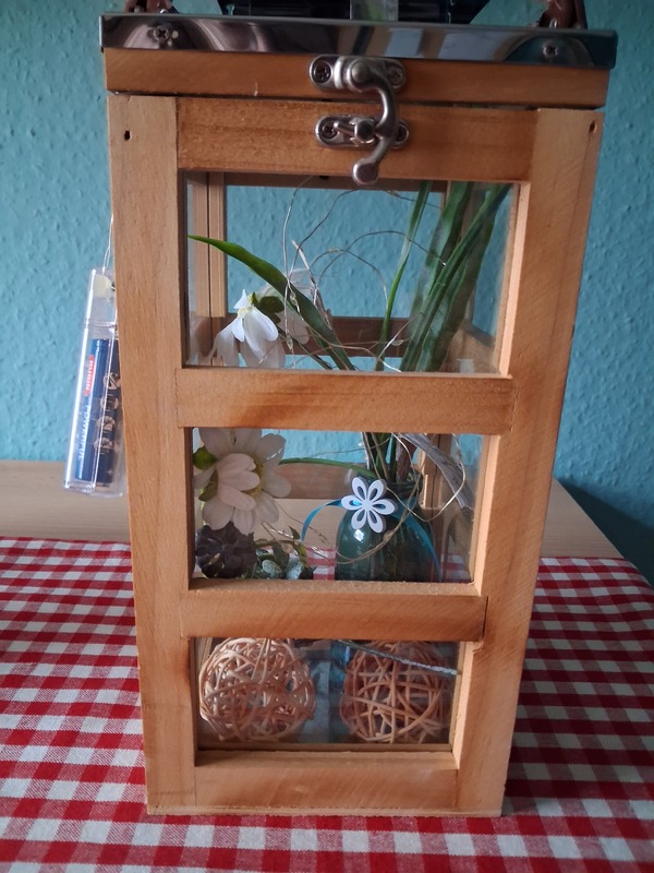 Verkaufe Holzlaterne mit Deko und Lich für 30.00 Euro