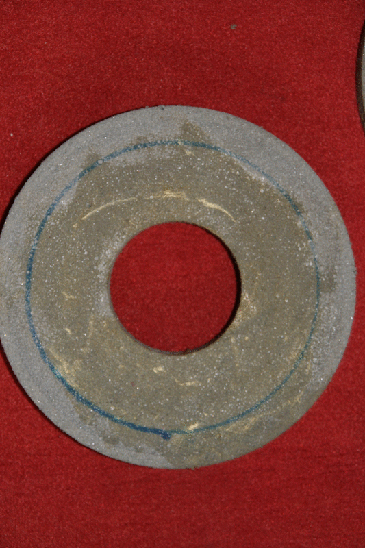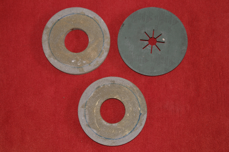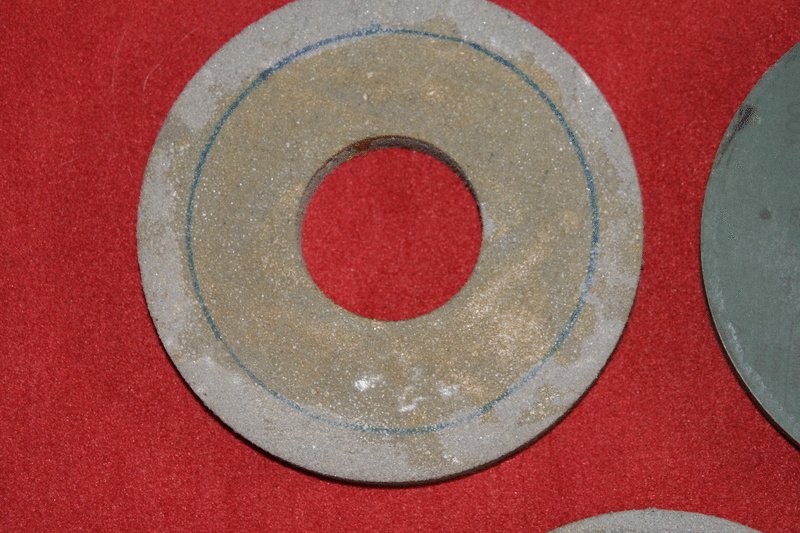 Auf einer Scheibe ist hinten was draufgeklebt wie auf den Bildern zu erkennen, ansonsten werden die Schleischeiben so verkauft, wie auf den Bilder dargestellt.