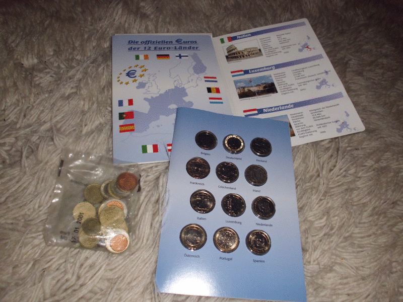 Start der Euromünzen von ersten 12 Ländern mit Erläuterung