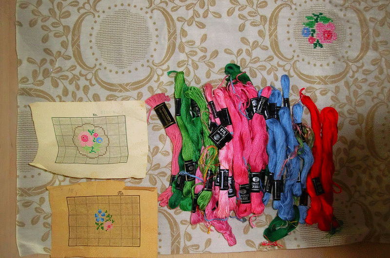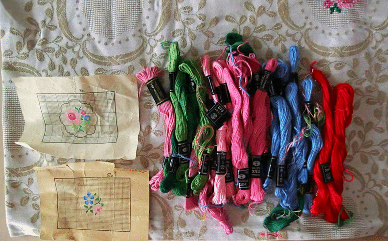 - Kreuzstich und Stickgarn mit Vorlage aus den 60er Jahren.