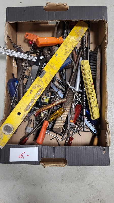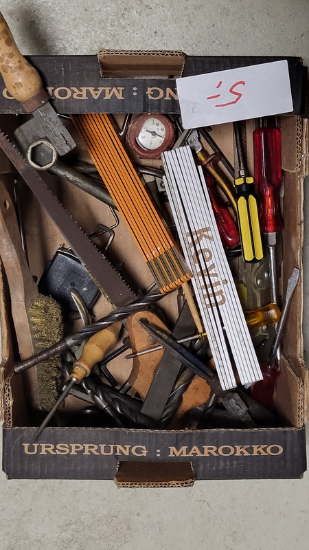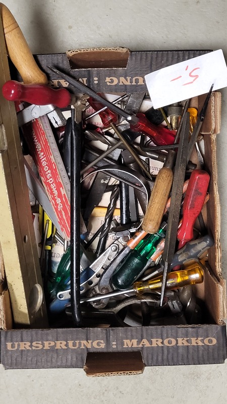 jede dieser Kartons/Kisten enthält verschiedene gebrauchte Werkzeuge und kann heute oder morgen zwischen 15 und 17 Uhr für nur 5.-€ Angeschaut und/oder Abgeholt werden