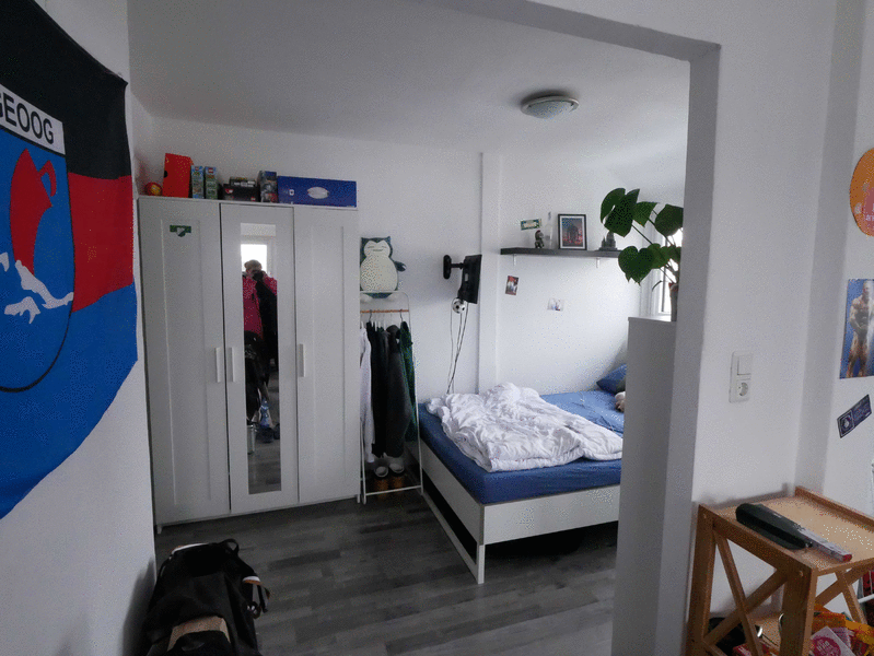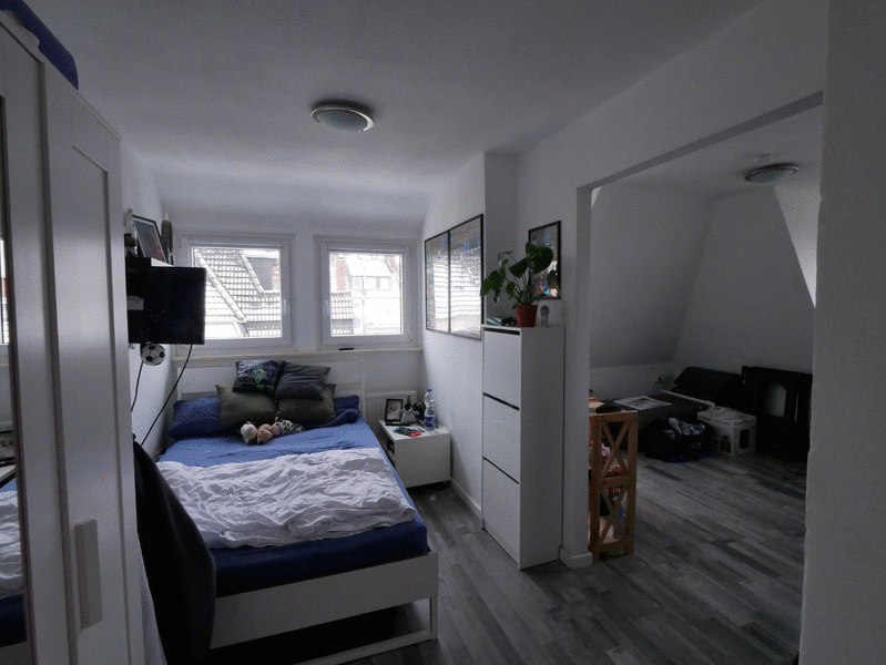 Die Wohnung liegt in einer ruhigen Seitenstraße im Dachgeschoß eines Mehrfamilienhauses mit 7 Wohneinheiten. Sie verfügt über helle 1,5 Zimmer, die sich ideal als getrennter Wohn- und Schlafbereich nutzen lassen. In der Küche ist ein Gasherd mit Backofen sowie ein Spülbecken vorhanden. Die Wohnung verfügt ferner über ein modernes Duschbad und einen kleinen Abstellbereich im Flur mit Waschmaschinenanschluss. Außerdem gehört ein Abstellraum im Keller zur Wohnung.