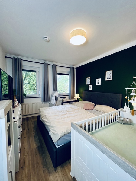 Auf rund 70 m² Wohnfläche erwartet Sie ein großzügiges Wohn- und Esszimmer. Die Einbauküche verfügt über eine integrierte Waschmaschine und das hochwertig sanierte Badezimmer mit ebenerdiger Dusche lässt keine Wünsche offen. Das großzügige Schlafzimmer verfügt über zwei Fenster und ein weiteres Zimmer mit eignet sich ideal als Kinder- oder Arbeitszimmer. Große Fenster sorgen für eine helle, freundliche Atmosphäre.