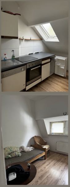 Im Dachgeschoss befindet sich eine weitere Wohneinheit, die ebenfalls über das Treppenhaus erreichbar ist. Diese umfasst ein kombiniertes Wohn- und Schlafzimmer, eine Küche, ein Badezimmer sowie einen Flur und eignet sich ideal als kompakte, eigenständige Einheit.