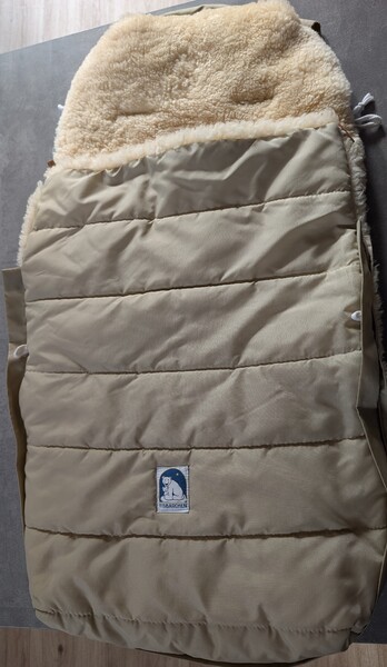 Oberteil abnehmbar durch umlaufenden Reißverschluss. Aus medizinisch gegerbten Lammfell. Passend für Kinderwagen und Buggys.