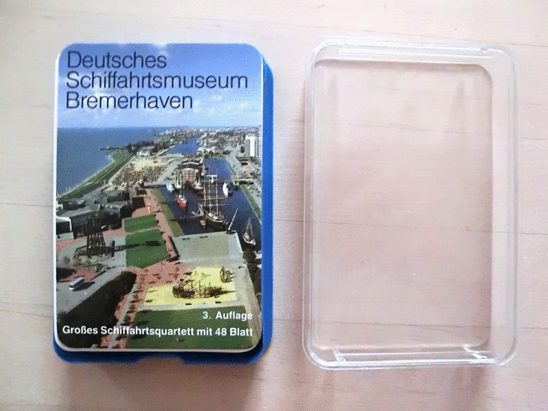 Besitze noch ein weiteres Quartett Deutsches Schiffahrtsmuseum. Da ist der Deckel gesprungen, aber sonst alles in Ordnung. Für 9€.... siehe Fotos