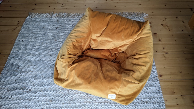 Sehr gut erhaltener kleiner Sitzsack aus gelbem Samt von nobodinoz, mehr Informationen zum Artikel hier: https://www.greenstories.de/nobodinoz-kindersessel-chelsea-gelb
