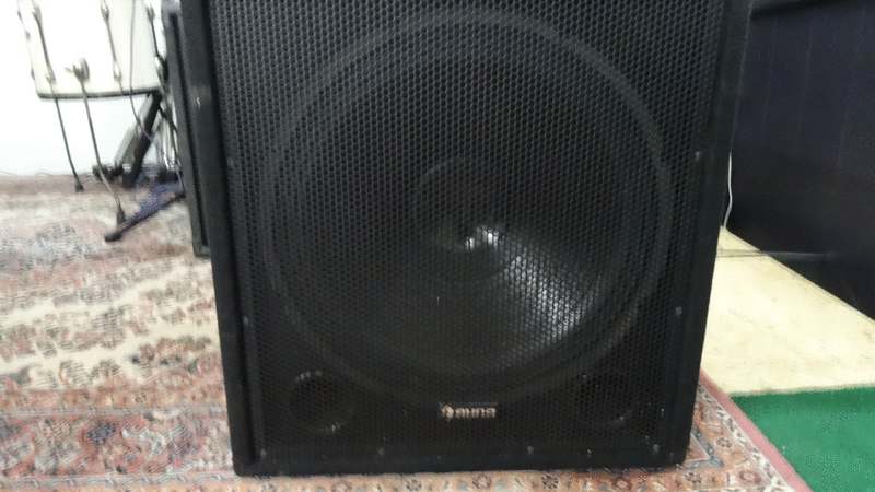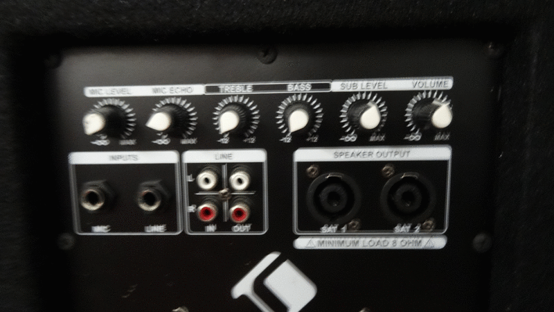 Volle Power : Aktiver 46 cm (18") Subwoofer (1000 W) mit Bi-Amping Technologie und 46 cm (18") Dynamic Driver, Echo-Effekt für Mikrofone sowie Bass- und Treble-Control und zwei passive 30 cm (12") Lautsprecher (je 300 W)