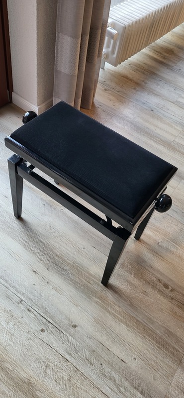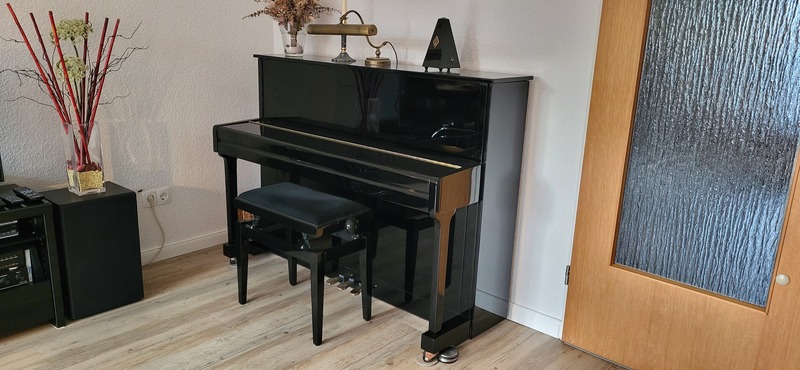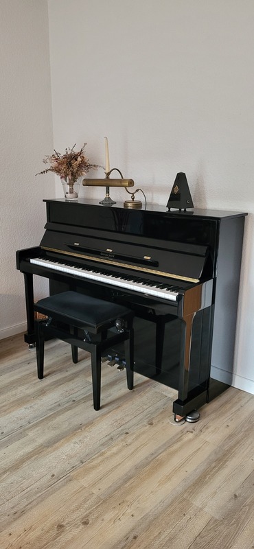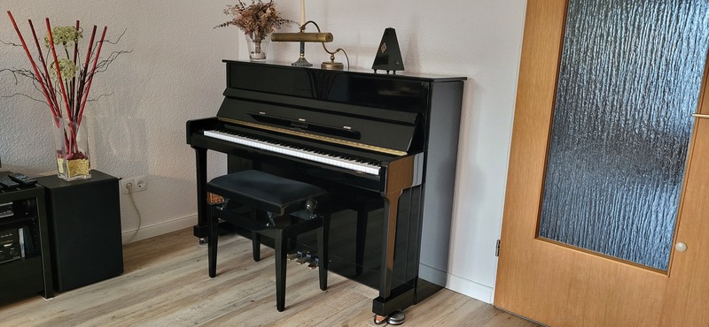 Sehr gut erhaltenes Klavier in schwarz poliert. Jährlich gestimmt, auch 2025, top gepflegt. Inklusive Klavierhocker, ebenfalls ohne nennenswerte Gebrauchsspuren.