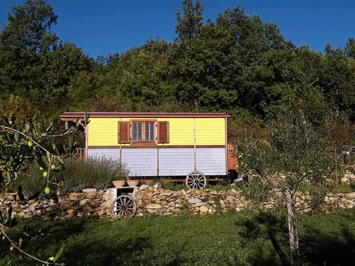 Der Wagen auf dem weitläufigen Grundstück bietet absolute Ruhe und einen freien beeindruckenden Blick auf das unverbaute Imperotal und die umliegenden Berge mit ihrer wilden, unberührten Natur. Wir sind umgeben von sonnigen Olivenhainen, Obst – u. Gemüsegärten ( die weißen Bohnen von Conio werden auch über die Provinz Imperia hinaus sehr geschätzt und sind anerkanntes SlowFood Produkt ), vielen Nussbäumen und Esskastanien.