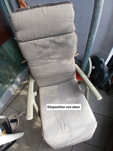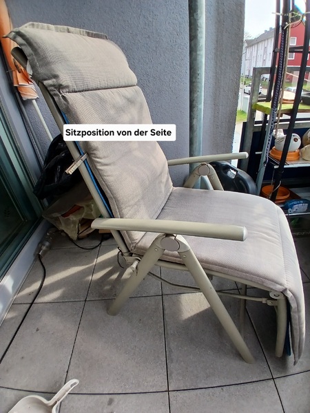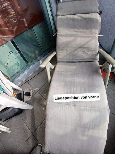 Hallo, ich biete hier eine gebrauchte, gut erhaltene Relax Liege mit dazu gehörender Auflage zum Kauf an. Beigefügte Fotos zeigen sie in Sitz- und Liegestellung. Sie ist voll funktionsfähig und kann, wenn sie nicht benutzt wird ( z.B. im Winter) zusammengeklappt werden. Für den sehr günstigen Preis von 8€ und Abholung nach Absprache verkaufe ich sie. Ein Versand ist meinerseits leider nicht möglich, da ich körperlich eingeschränkt bin.