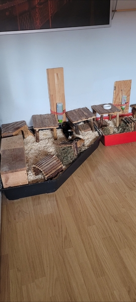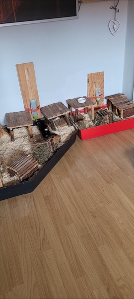 Nun habe ich einen schönen,platzsparenden Dreieckkäfig komplett mit Zubehör abzugeben.Gitter vorhanden,aber nicht auf dem Bild,weil wir das nicht brauchten.Auf wunsch auch den roten Kägig,als Verlängerung.Alles komplett für 40 Euro.