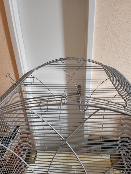 Verkaufe Vogelkäfig mit Lafette (Höhe/Breite/Tiefe 95/65/44) für 50 €. Gesamthöhe mit Lafette ca. 154cm und das Dach kann geöffnet werden. Holzstangen sind allerdings nicht mehr dabei
