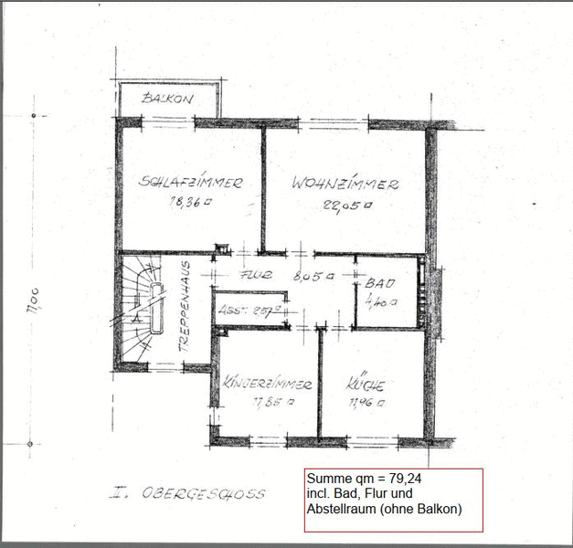 - ca. 79 qm (inkl. Flur u. Abstellraum; ohne Balkon)