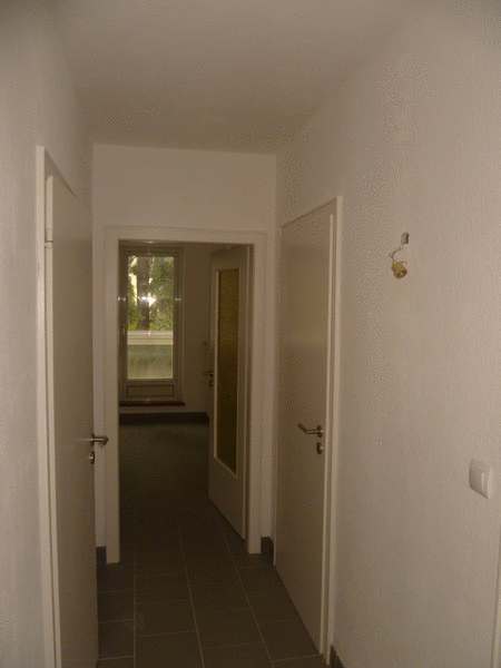 Die Wohnung ist in der Hochparterre in einem zwei Parteien Reihenhaus in einer Seitenstraße.