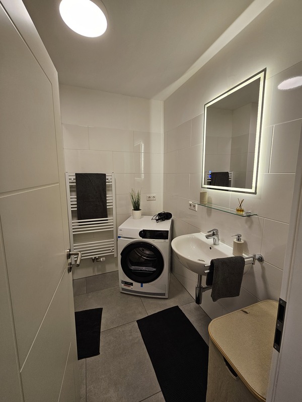Das Badezimmer ist gepflegt und funktional. Ein Waschtrockner steht Ihnen ebenfalls zur Verfügung.